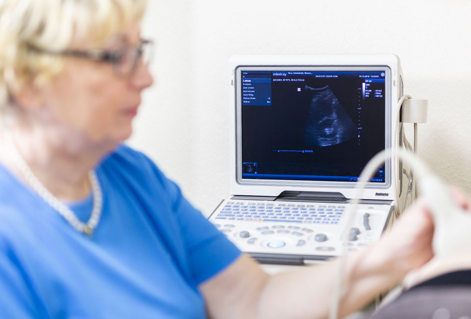 Ultraschalluntersuchungen führen wir durch bei folgenden Organen: Leber, Galle und Gallenweg, Bauchspeicheldrüse, Niere, Lymphknoten, Bauchschlagader, Milz, Blase, Prostata und Schilddrüse.